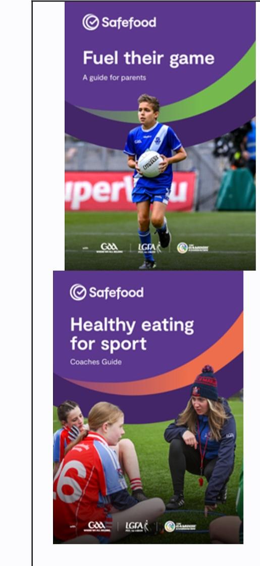 Safefood, in collaboration with the Gaelic Games Associations, have developed a suite of resources to support juvenile players, parents, and coaches in choosing the right foods to support their Gaelic games activity and overall health and wellbeing.
