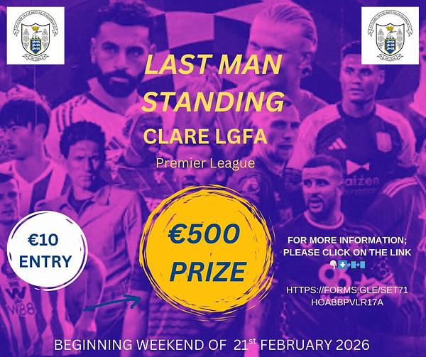 Clare LGFA Last man standing will kick off on the weekend of the 21st of February 2026, with entries now officially open!